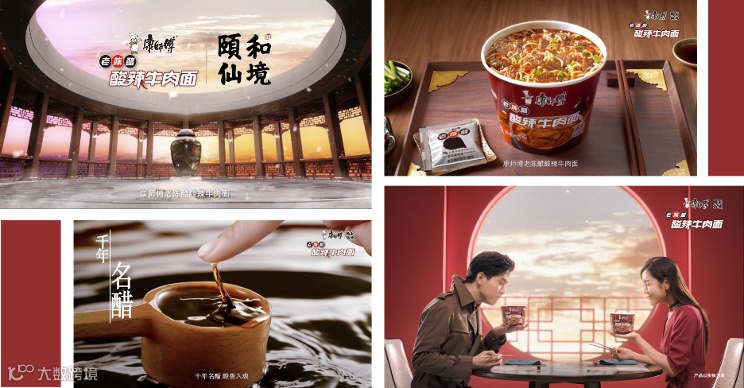 通过带有传奇色彩横跨古今的故事,带出酸辣牛肉面的灵魂-老陈醋(千年名醋)的核心魅力,持续从口味与故事去强化康师傅老陈醋酸辣牛肉面酸香诱惑的特点。