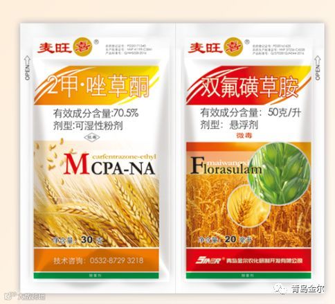 青岛金尔农化研制开发有限公司根据当前小麦田阔叶杂草“种类多、抗性强、难防除、成本高”等实际情况,通过大量的市场走访以及多地的大田实验,推出了“麦旺喜”、新型麦田除草剂,打破抗性,安全高效,解决阔叶杂草防除的难题。