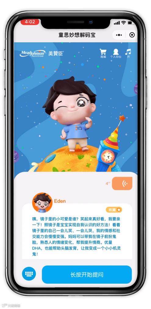 We developed a baby nursing and parenting mini-program for Mead Johnson China using our custom-built voice AI. Our technology implements iFlytek’s NLP module and leverages a global database of baby nursing and parenting entries. It is a scalable build that we hope to bring to other categories.