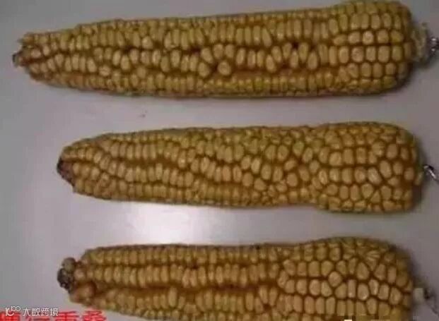 原因:玉米的雌穗是成对分化形成穗行数的,如果在第9片展叶期间全田喷洒乳酸合成抑制剂或磺酰脲类除草剂(比如,烟嘧磺隆),尤其是和有机磷杀虫剂混用,就会扰乱穗分化,导致穗行数分化缺失。以后打除草剂的时候,可要慎重了!