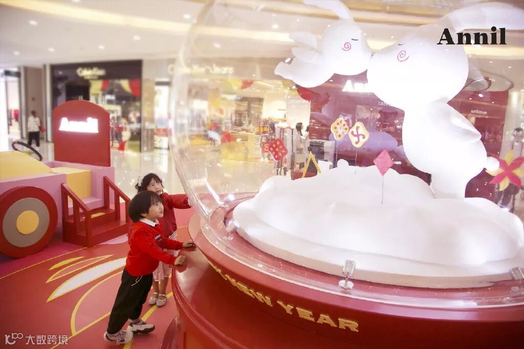 广场中的超大水晶球吸引大家驻足,水晶球中的安奈儿Annil双兔亲亲相依。