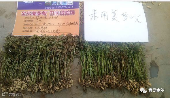 通过上图我们可以看到:使用美多收的田块花生秧苗出的多,花生果实结的多,与未使用的对照相比,美多收的增产效果很明显。