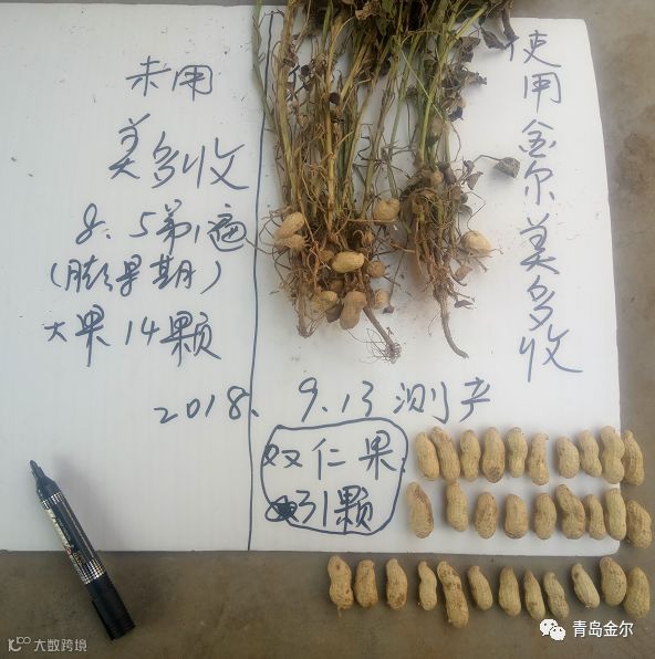 从整体看,使用美多收的花生叶茂,颜色发绿,下针多而且双仁果多。