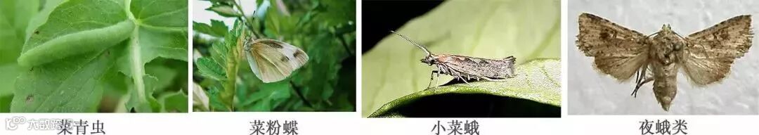 菜粉蝶(菜青虫)、小菜蛾、甜菜夜蛾、甘蓝夜蛾、斜纹夜蛾 :为害十字花科、豆类、茄果类、瓜类、百合科、菠菜、莴苣等蔬菜。