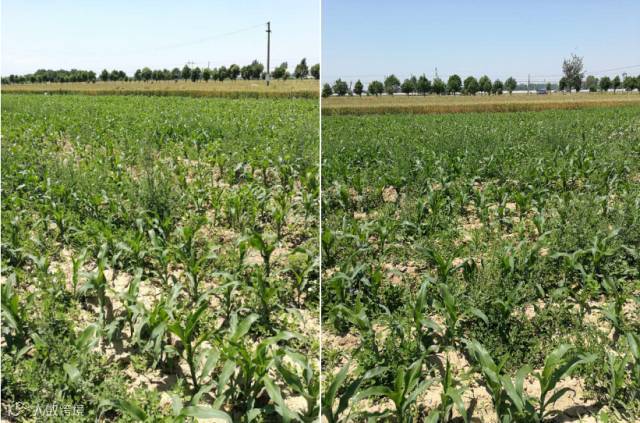进行效果回访,看到玉米田里杂草已经干枯死亡。