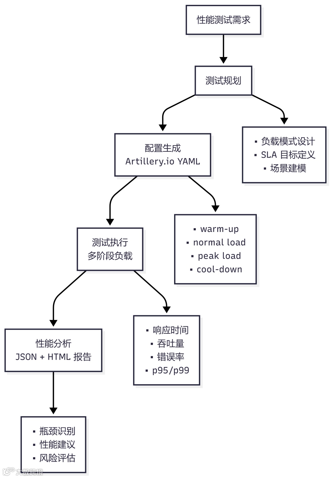 • 使用多阶段测试 (warm-up → load → cool-down)