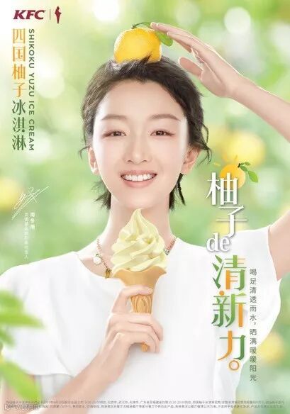 小黄鸭周冬雨的生活和个性、清新气质深烙人心,与清新淡雅的四国柚子带来的氛围相互映和,再佐以肯德基冰淇淋花筒一直以来的浓醇奶香,舔在嘴里讨人欢心,快乐因子一下子一股香氛乍现~