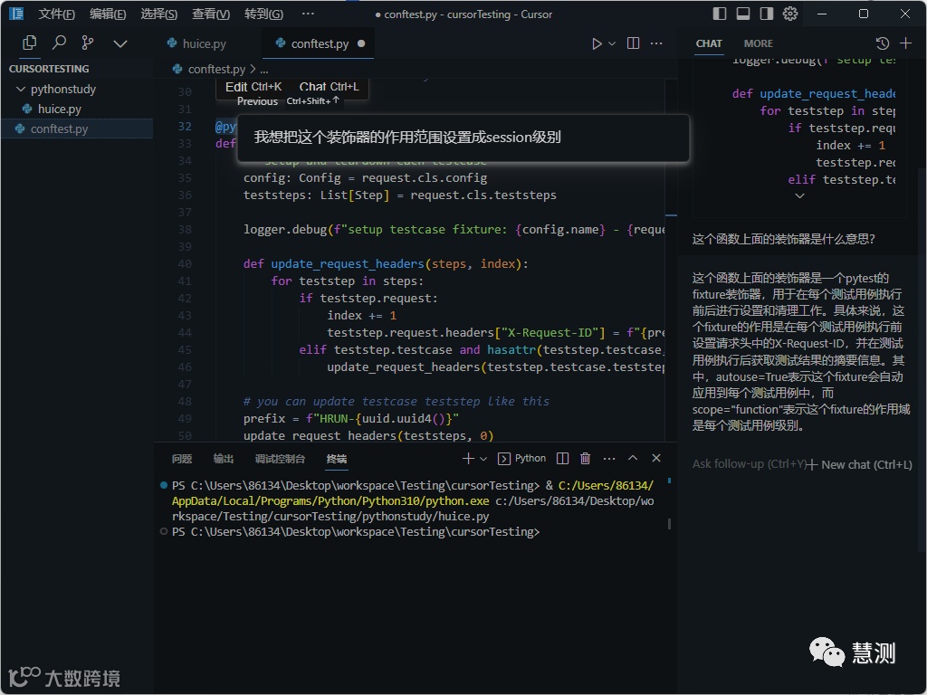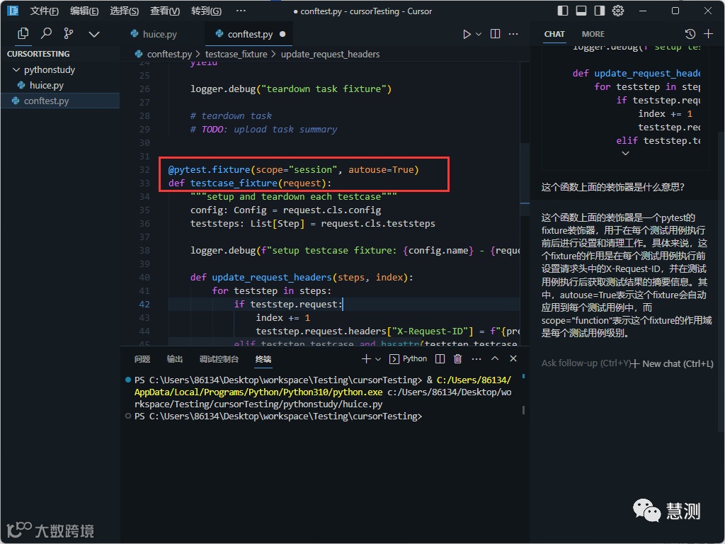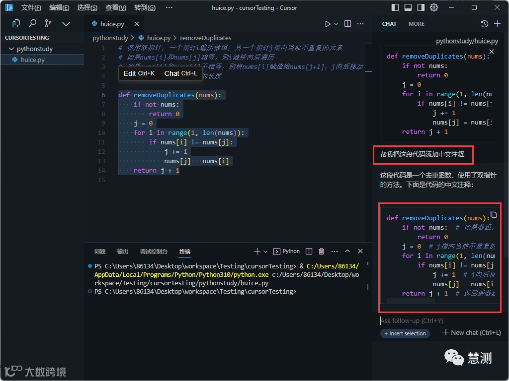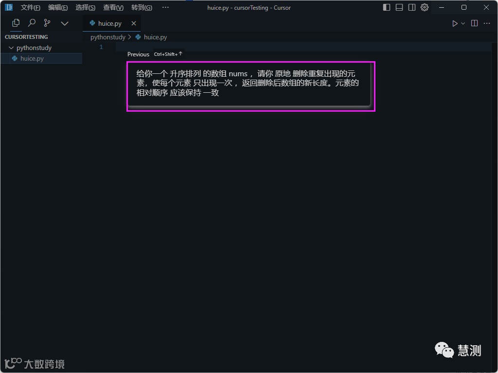 以python为例,新建一个子目录python子目录,在该目录下新建Python文件:huice.py。