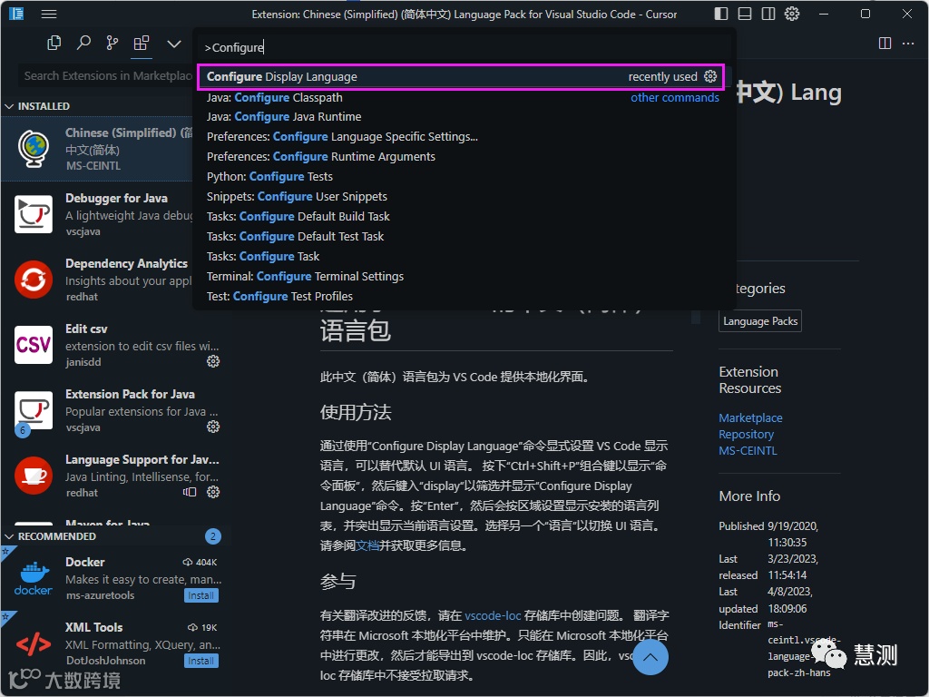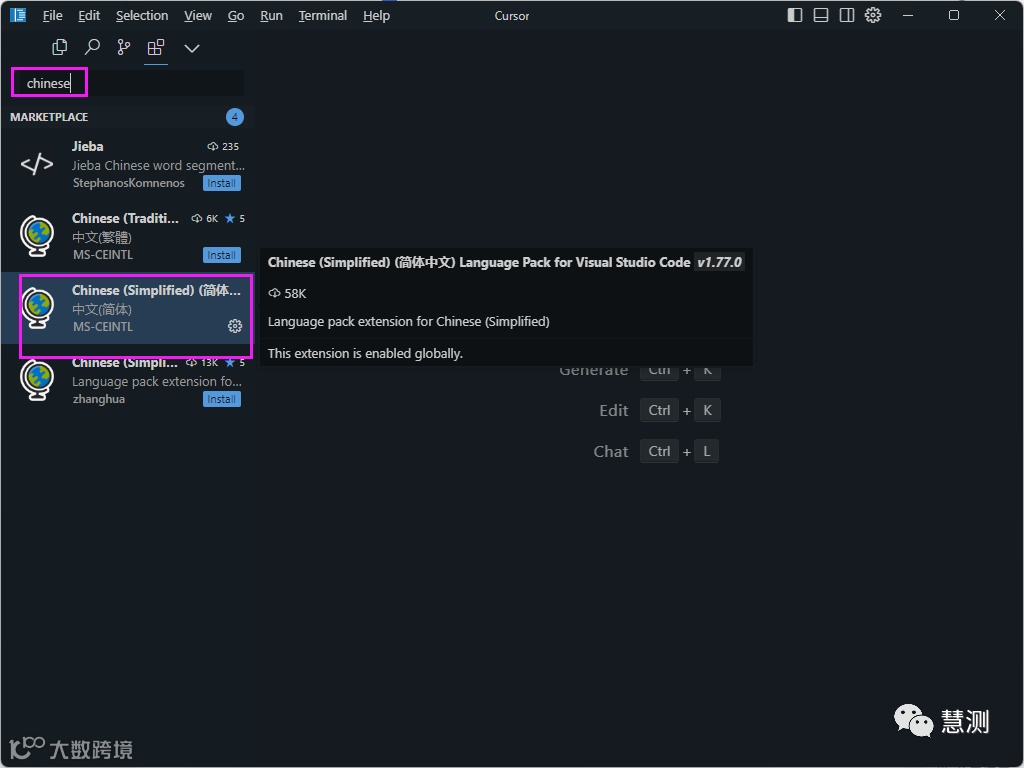 汉化包安装完成后按键:Ctrl+Shift+P弹窗组件选择命令框: