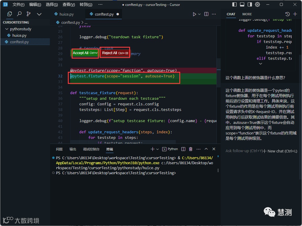 它会根据你的意思进行修改,如果你认为符合要求,点击 Accept 即可生效,否则点击 Reject 拒绝修改。