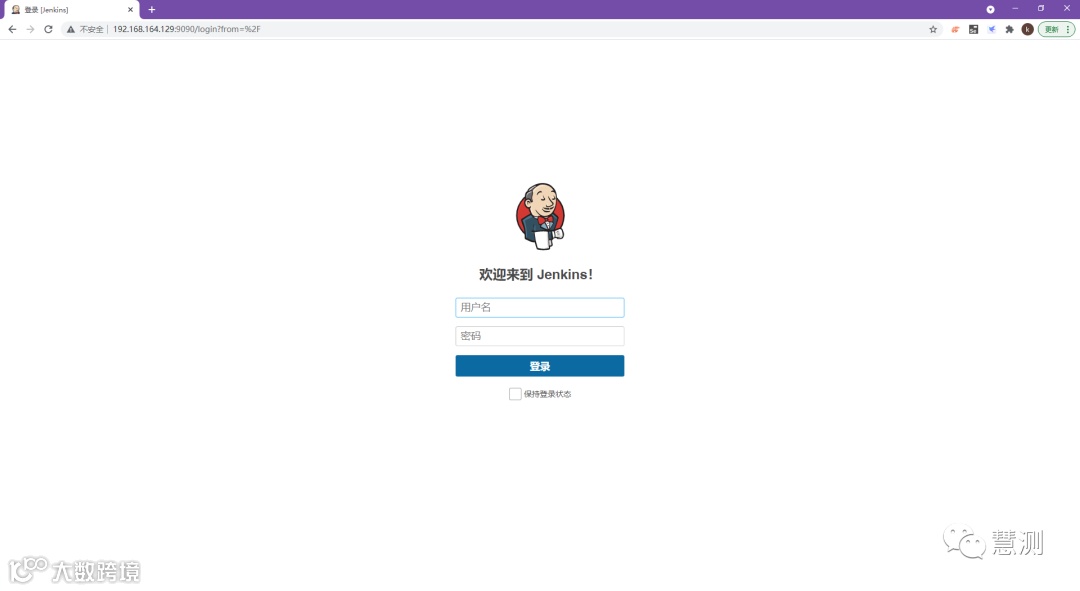 1、在浏览器地址栏中输入Jenkins的地址,然后分别在用户名和密码框中输入账号、密码,点击登录按钮,对Jenkins执行登录操作。如下图所示: