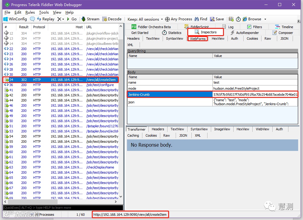 4、此时,需要分析Jenkins-Crumb从何而来。因此,要去到上个请求的body中去看个究竟。如下图所示:
