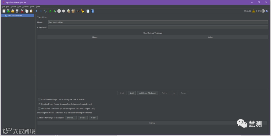 1、建立一个测试计划命名为:Test Jenkins Plan。如下图所示: