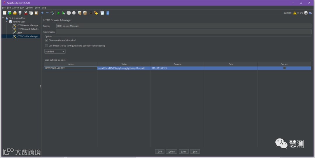 6、选中线程组,添加一个Cookie管理器,用来管理登录后的cookie。如下图所示: