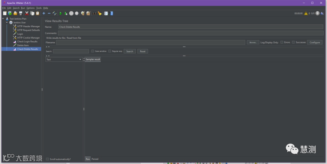 9、选中线程组,再添加一个结果树,将其重命名为:Check Delete Results,用以监听删除job请求是否成功。如下图所示: