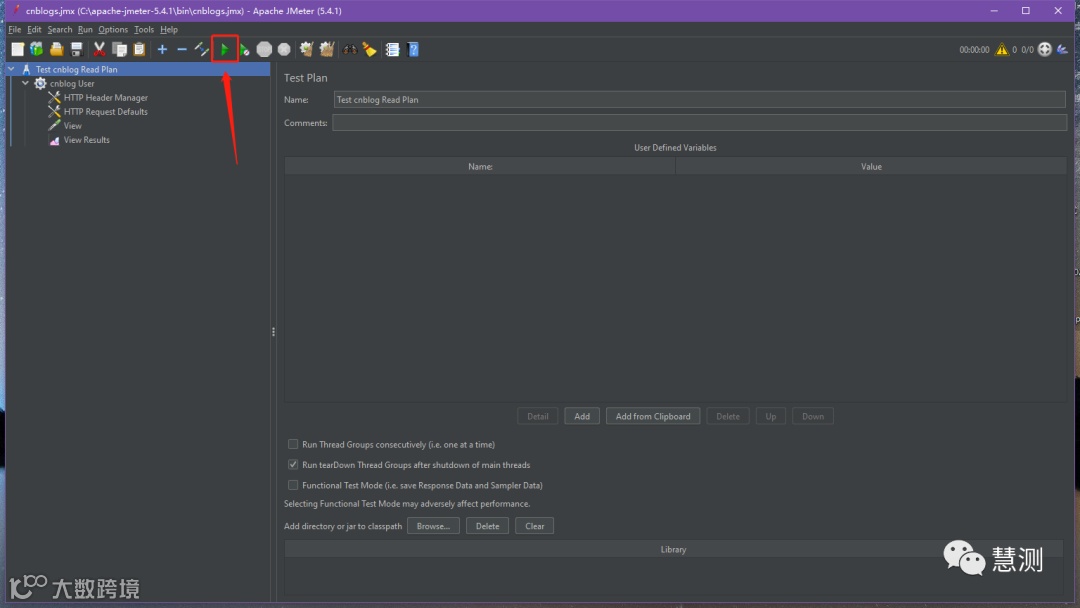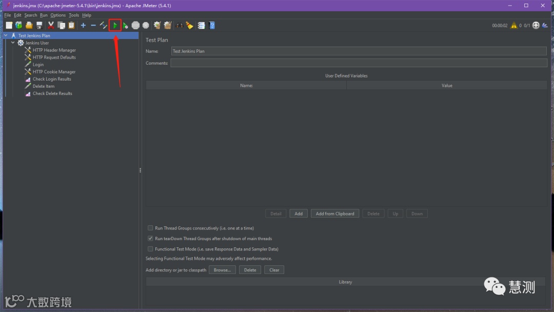 1、点击绿色的按钮,运行测试计划,如下图所示: