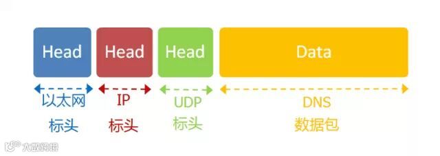 "标头"部分主要定义了发出端口和接收端口,"数据"部分就是具体的内容。然后,把整个UDP数据包放入IP数据包的"数据"部分,而前面说过,IP数据包又是放在以太网数据包之中的,所以整个以太网数据包现在变成了下面这样: