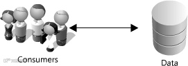 大多数系统简化为如图 Figure 1.6所示,这是一个良好的开始。如果你有大量的数据,你想快捷的访问,就像一堆糖果摆放在你办公室抽屉的最上方。虽然过于简化,前面的声明暗示了两个困难的问题:存储的可伸缩性和数据的快速访问。