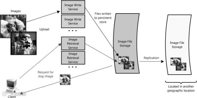 在我们的例子中,上传和检索图像的请求都是由同一个服务器处理的;然而,因为系统需要具有伸缩性,有理由要将这两个功能分解为各由自己的服务进行处理。