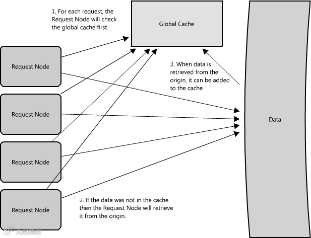 Figure 1.10: Global cache where cache is responsible for retrieval