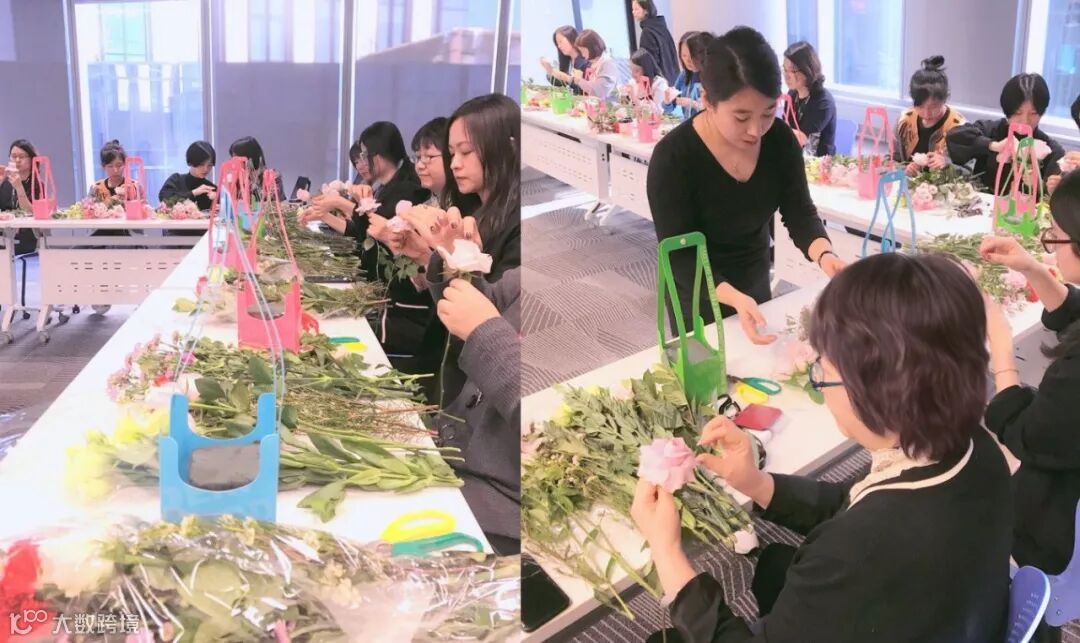 仙女们认真学习插花技巧,用插花作品展现了属于自己的独特品味与魅力。