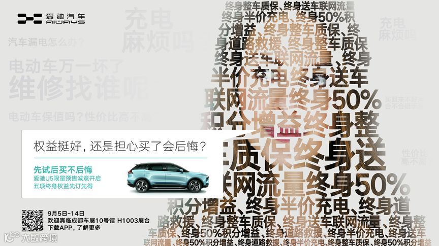上海电通洞察消费者心理,为成都车展爱驰汽车的预售行动提出“‘试爱’行动”的沟通主张,旨在引导消费者参与爱驰汽车的试驾