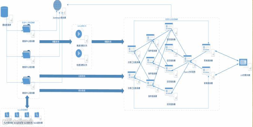 上图是当当的搜索架构,这里有一个集群是做数据分析的,上面备满了数据。