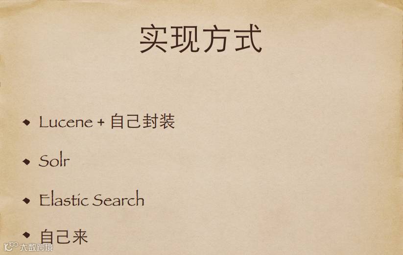 这里提一下,当当的搜索引擎是自己实现的,。现在,新兴的互联网公司大部分都是使用第一种或者第二种,数据量比较大的一般采用第三种。