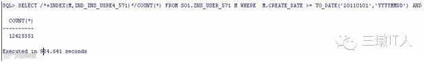 SELECT /*+INDEX(M,IND_INS_USRE4_571)*/COUNT(*) FROM SO1.INS_USER_571 M WHERE M.CREATE_DATE >= TO_DATE('20110101','YYYYMMDD') AND M.CUST_TYPE='1';