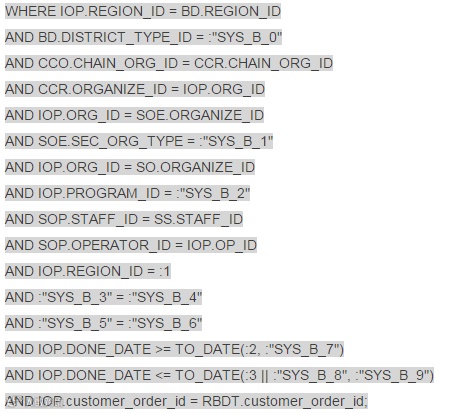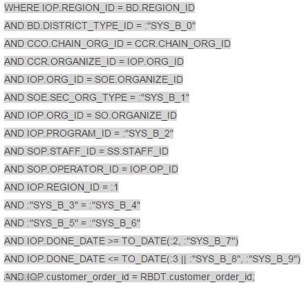 仅仅从语句的变量中就发现了一个问题:本语句是循环执行的!而且循环次数非常多!找到应用方,电话回访,果然如此!而且本作业跑了一天了好没有跑完。