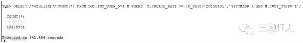 SELECT /*+full(M)*/COUNT(*) FROM SO1.INS_USER_571 M WHERE M.CREATE_DATE >= TO_DATE('20110101','YYYYMMDD') AND M.CUST_TYPE='1';