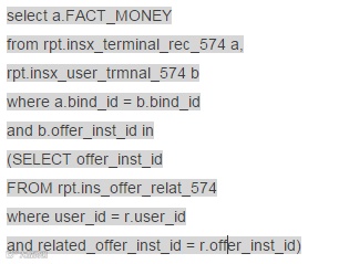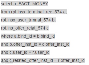 在某报表系统的专项优化中,我们抓到了一个异常复杂的sql涉及到13张表,5层的嵌套....通过分析业务需求之后,发现用多表关联可以代替In字查询 (业务效果不变)我们将SQL里面的三个小段落做了类似如下修改,并在关联键上创建了索引,由原来跑2个小时提速到10秒之内: