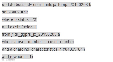 在某个每月一次的维护作业下有如上一段脚本,本质上就是对大表I_USER_STATUS_CENTER进行按条件的批量更新,表I_USER_STATUS_CENTER上有约16亿数据,且MSISDN列上有索引,distinct number约1.1万所有,也就是每次循环符合条件的数据:16亿/1.1万=15万。