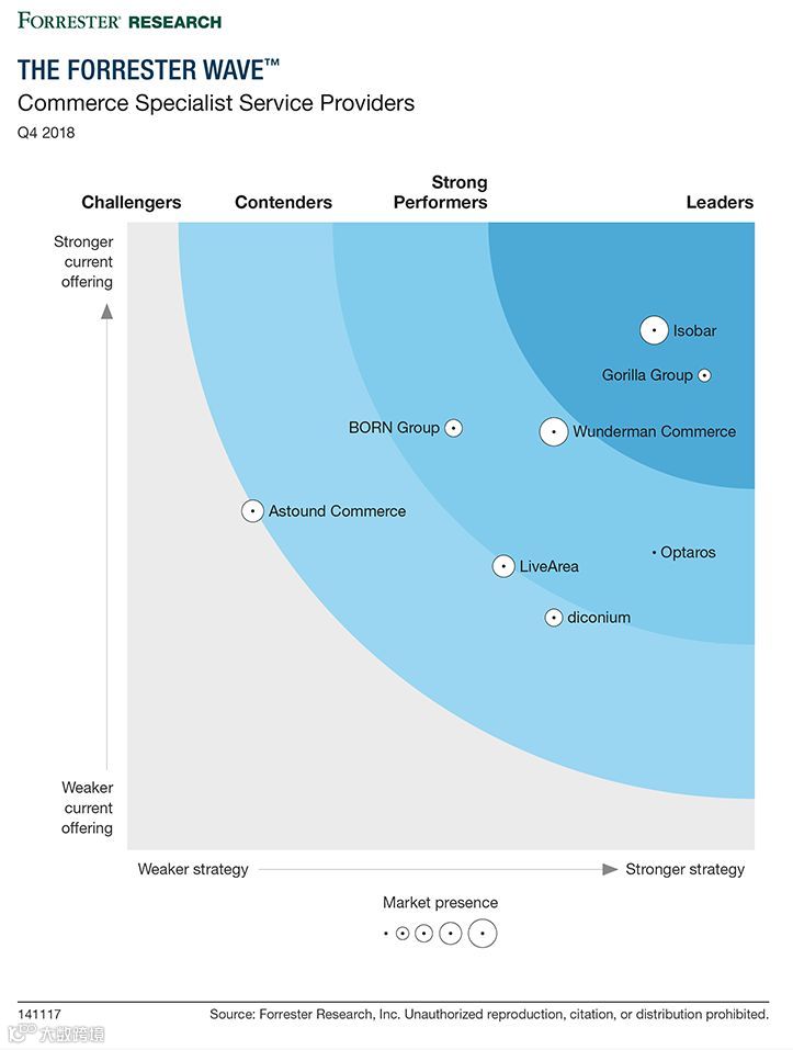 Forrester使用24条标准的评估体系来考量8个最具影响力的专业电商服务供应商,旨在帮助数字业务策略专家选择最合适的合作伙伴。报告指出: