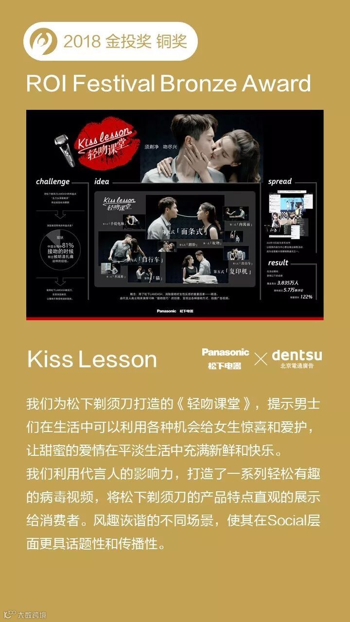 金投赏(ROI Festival)是全球第一个商业创意奖项。旨在奖赏最具创意的品牌和企业,是鼓励在创意领域中各公司用最小的预算,获得最大市场回报的创意奖项。