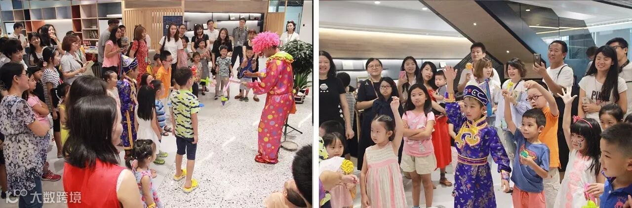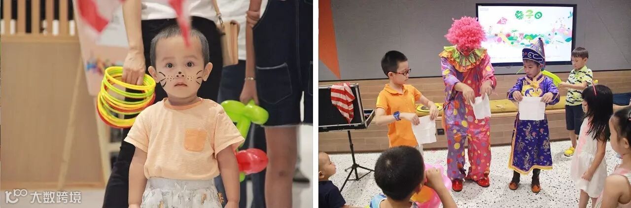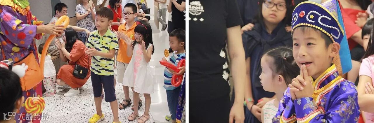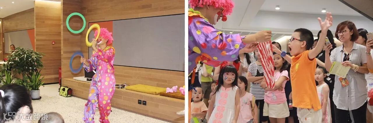 小丑表演吸引小朋友们参与互动