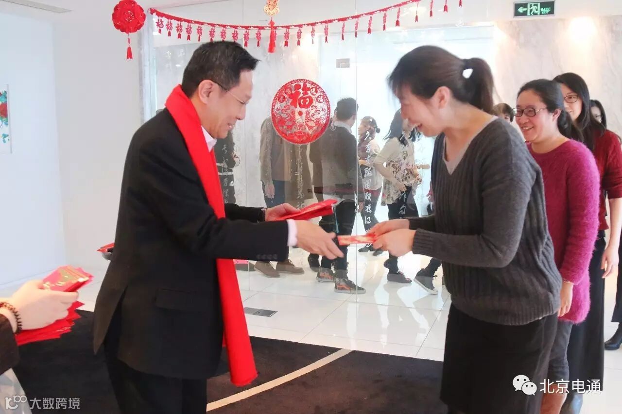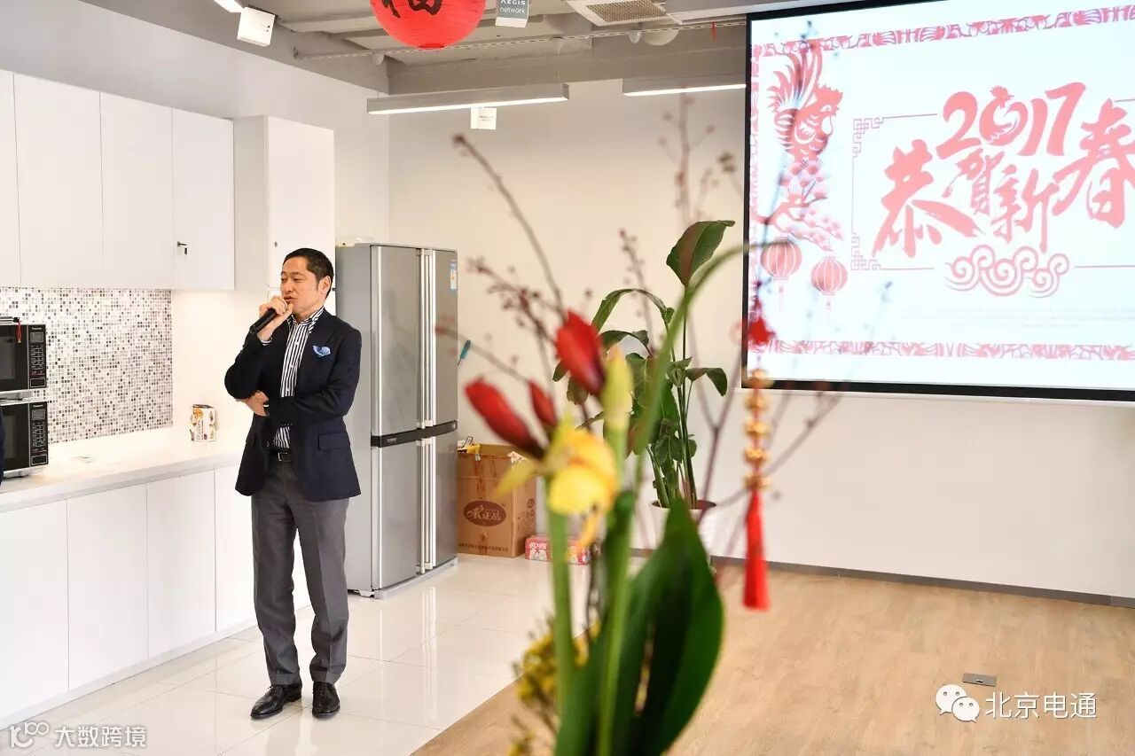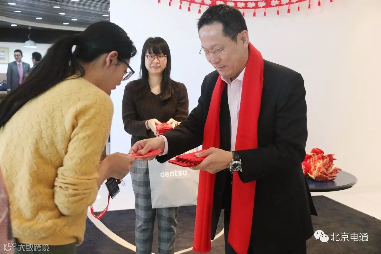 大BOSS马场CEO在团拜会现场,向到场同事送上新春问候并派发“开工红包”。他首先用中文向大家拜晚年,祝大家新春快乐,阖家幸福。接下来他发表新春寄语:“我们的价值是为客户创造可持续的强有力品牌,因此,北京电通将在今年逐步开展企业改革,强化北京电通的以营业为中心的整合统筹能力及营销策划能力,并提高创意、内容营销、数字营销等专业领域的能力。一边脚踏实地地做好眼前的工作,一边面向未来不断革新,不是一件容易的事,但希望大家一起加油,把北京电通建设得更好。”