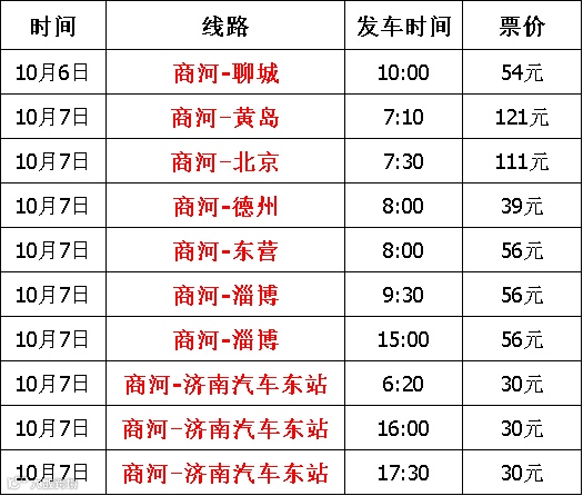为解决旅客返程乘车需求,以下线路临时开通加班车: