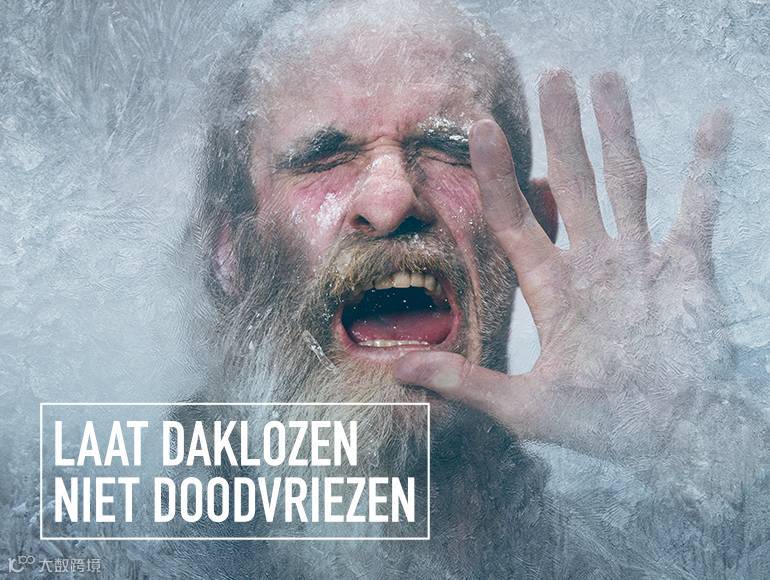 当气温过低时,海报便会呈现更高程度的冰冻效果,搭配“LAAT DAKLOZEN NIET DOODVRIEZEN”(别让流浪汉冻死街头)的活动主题,让过往行人感受更直观的冲击。