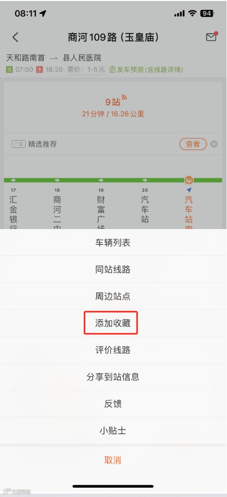 (2)可以选择收藏功能,将常用线路添加进收藏夹,方便下次使用