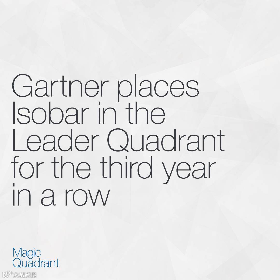 世界领先咨询公司Gartner于近日发布了最新《2017魔力象限:全球数字营销代理商》①报告。该报告以“执行能力”及“公司愿景的深远度”为标准,对22家数字代理商进行了调研评估。安索帕因为在这两方面的杰出表现,连续第三次进入数字代理商领导者行列。