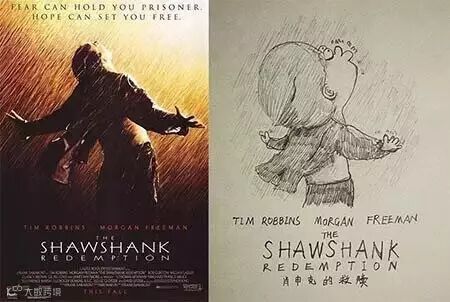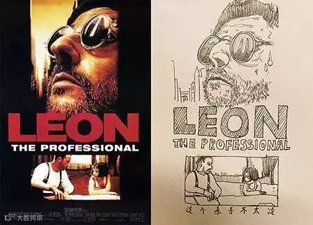 每张画要花20分钟到半小时,既可以通过临摹海报学习世界大师的设计,又能练练笔。为了表现“这个杀手不太冷”,他还在Leon额头画了几滴汗(表示热)。