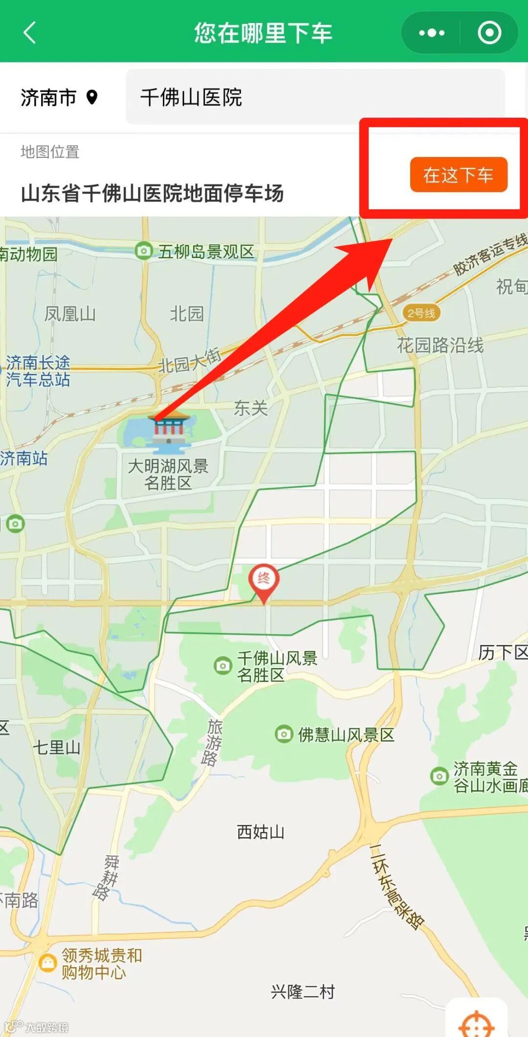 ⑤根据搜索出的地点选择在哪下车;