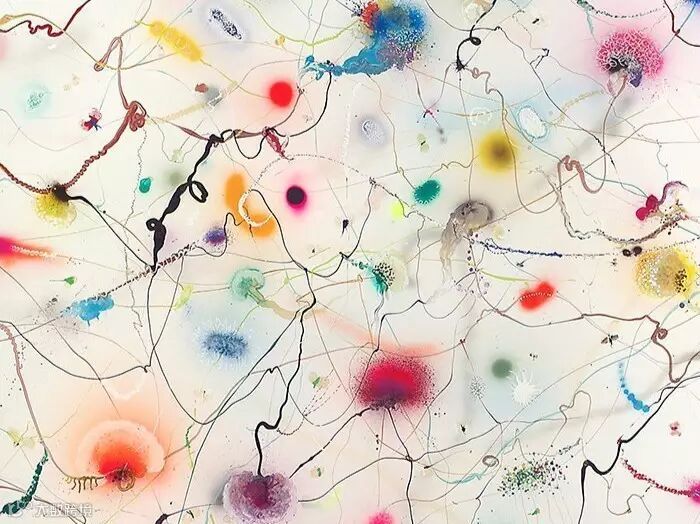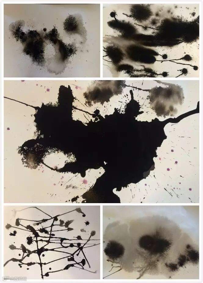 “潜意识创作”手法:经过喷水,滴墨,旋转等类似贴画转印的方法来创作图案,原来绘画可以“不动脑”!