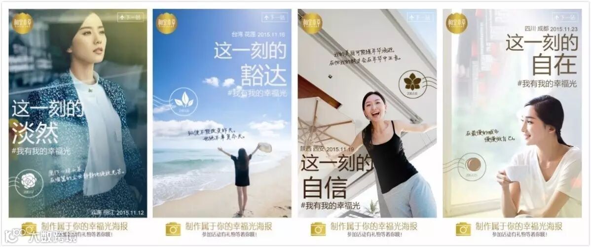 借助微信、微博KOL的社交优势,一步步激起消费者对于品牌内在的触觉。鼓励、唤起每一位女性听从内心,找到属于自己的幸福光。