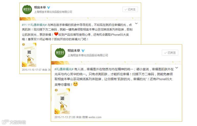 与此同时,发起#11.11礼遇幸福光#社交话题,一键申领小样,通过产品传递进一步引发用户关注,并拓展山茶花精油产品的受众使用群,让更多的人感受肌肤的“幸福光”,从而扩大品牌声量。