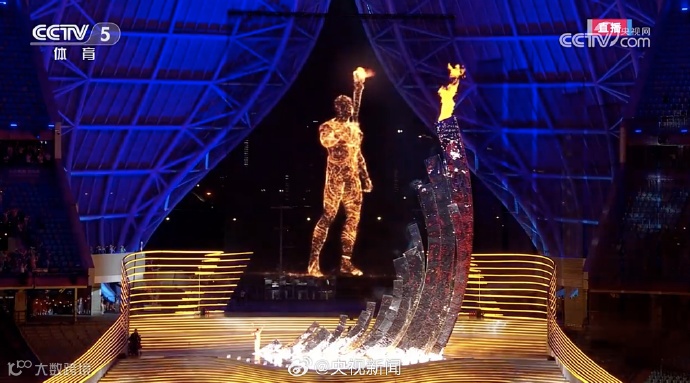 刚刚,承载着全亚洲亿万人热情的“数字火炬手”与最后一棒火炬手汪顺,共同点燃杭州亚运会主火炬塔: