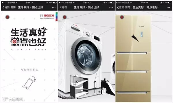 除了视频教你来偷懒,博世家电还相应推出了为“懒人”量身定制的H5,只需一个动作,冰箱、洗衣机、吸尘器……家里的一切都会井然有序。