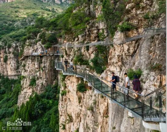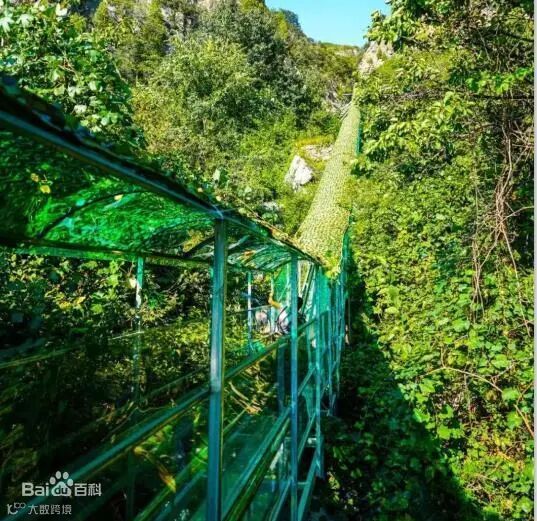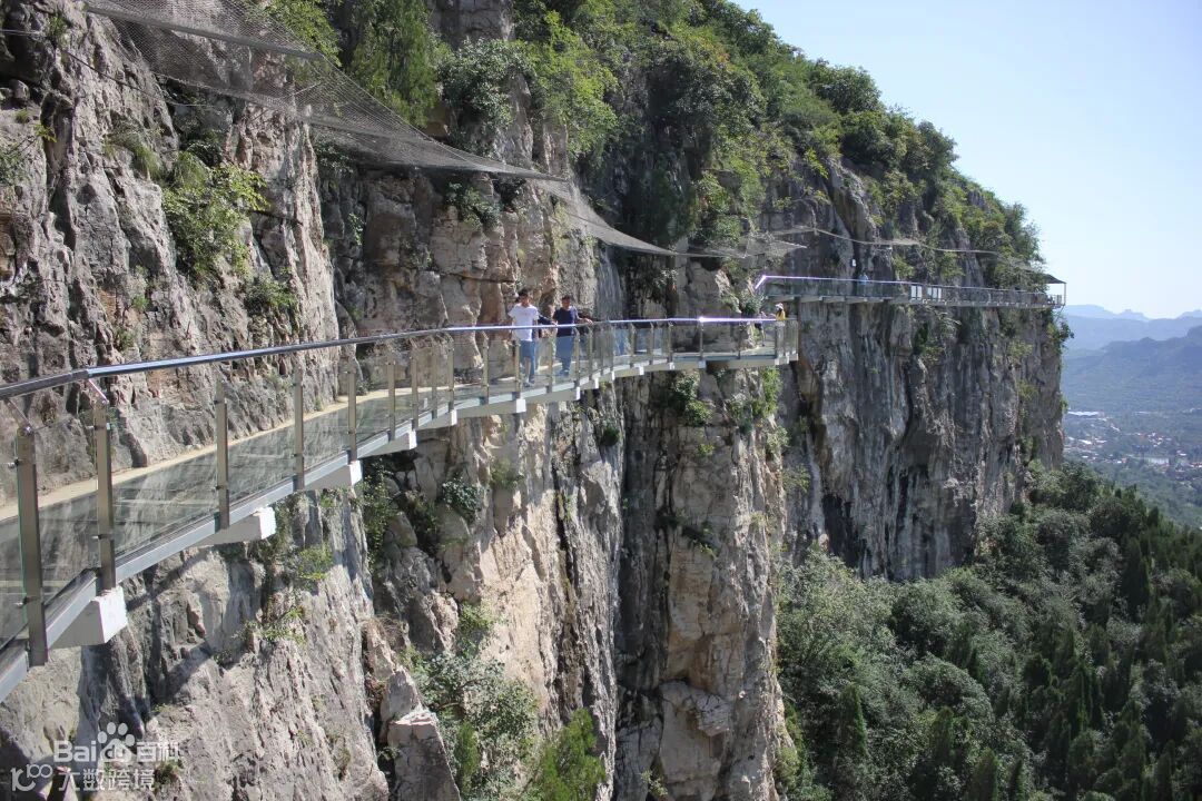 济南青铜山大峡谷玻璃栈道是山东首个挂壁玻璃栈道,距地面约130米,长208米  ,玻璃栈道采用超白精磨钢化夹胶玻璃,青铜山大峡谷玻璃栈道也是济南周边最长的玻璃栈道。