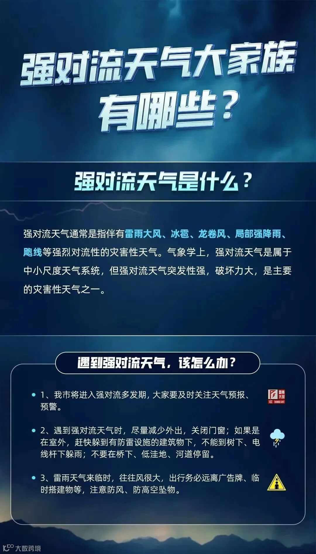 强对流天气是指出现短时强降水、雷雨大风、龙卷风、冰雹和飑线等现象的灾害性天气,具有“突发性高、生命史短;范围小、局地性强;天气剧烈、破坏力大、极易致灾;预报难度大、预警提前量小”等特点。